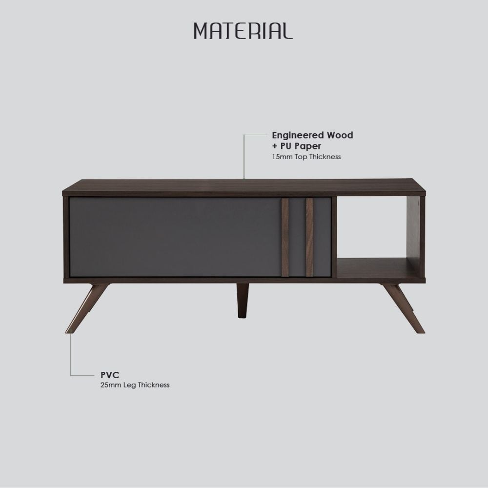 - Material: Engineered wood with PU laminated surface, PVC Legs