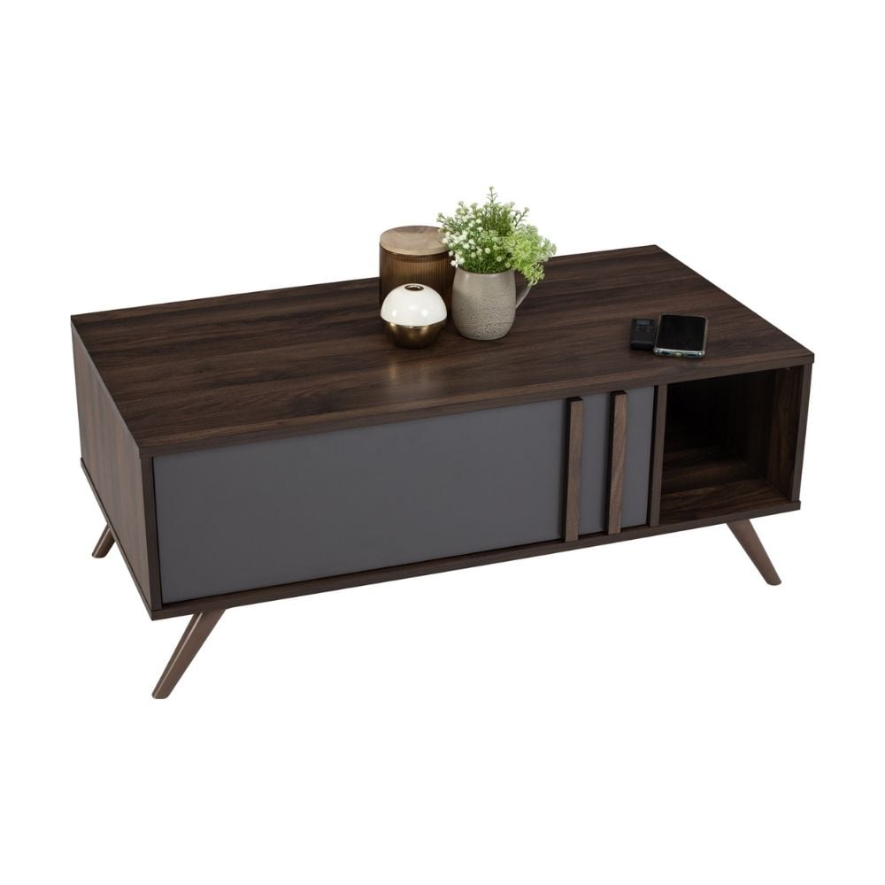 Designed with both form and function in mind, the Blackburn features a spacious tabletop for everyday use, paired with concealed drawer storage to keep living areas tidy and organised. The clean silhouette, angled legs, and subtle colour contrast make it a standout centrepiece without overpowering the room.