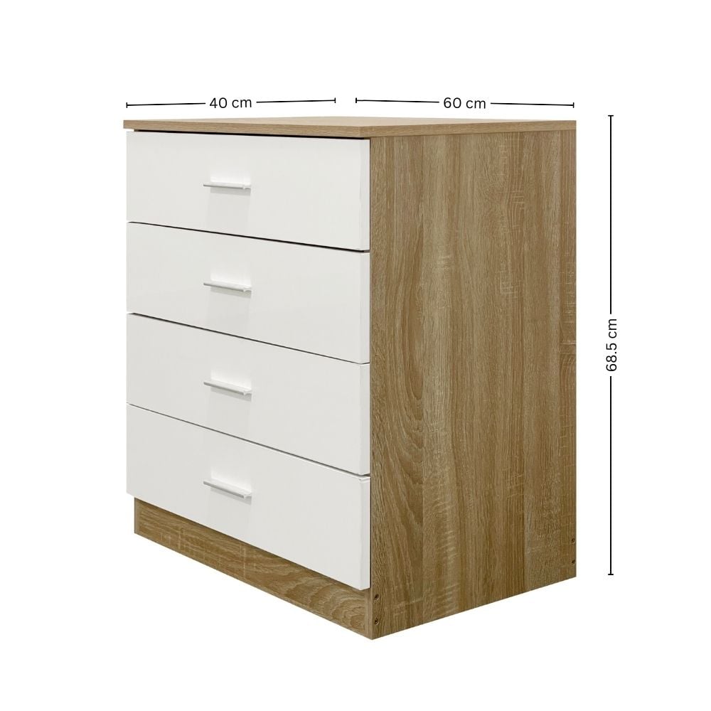 Bring warmth and modern style to your home with the Bragg Dalian 4 Drawer Chest of Drawers in oak and white. The natural oak wood finish paired with crisp white drawer fronts creates a fresh, contemporary look that suits a wide range of interiors.