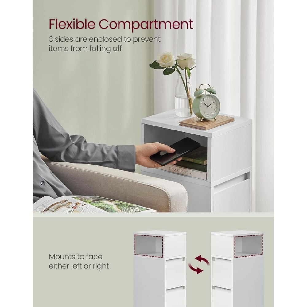 Maximise style and storage in even the smallest spaces with the Bragg Darwin Slim Bedside End Table, Set of 2. Designed with a narrow, tall profile, these tables make the most of vertical space without taking up much floor area, perfect for compact bedrooms, living rooms, or cosy corners.