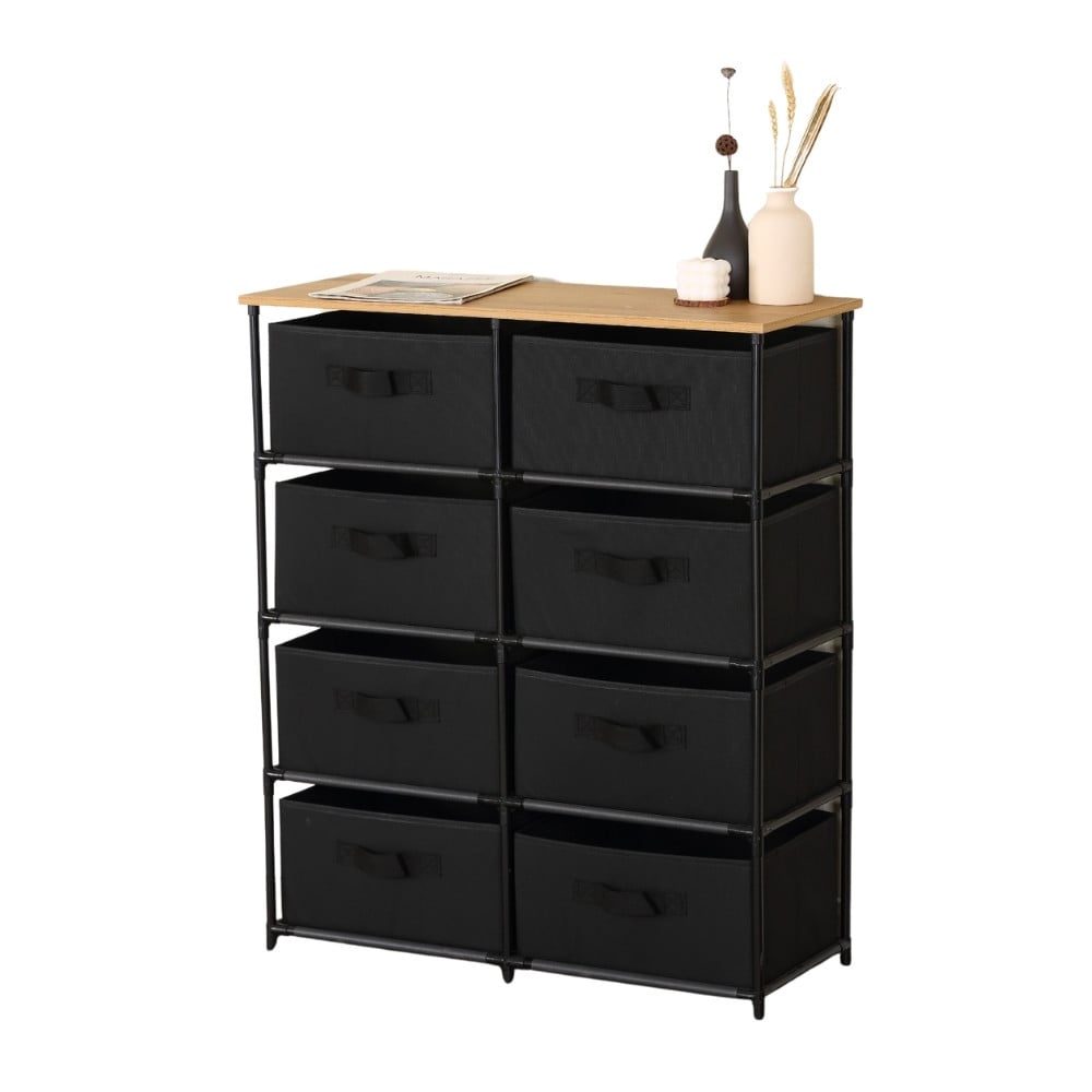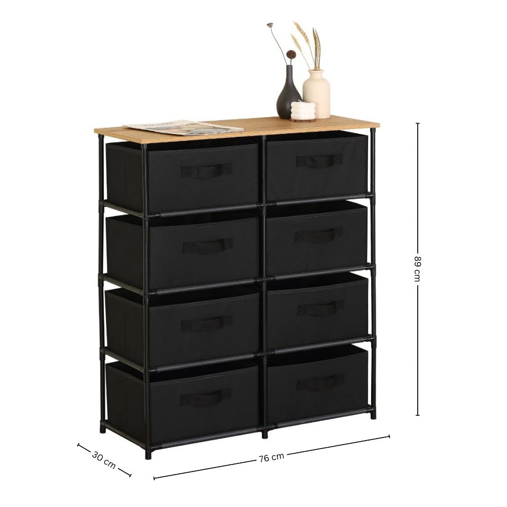 - Structure: 8 fabric storage drawers with top display surface