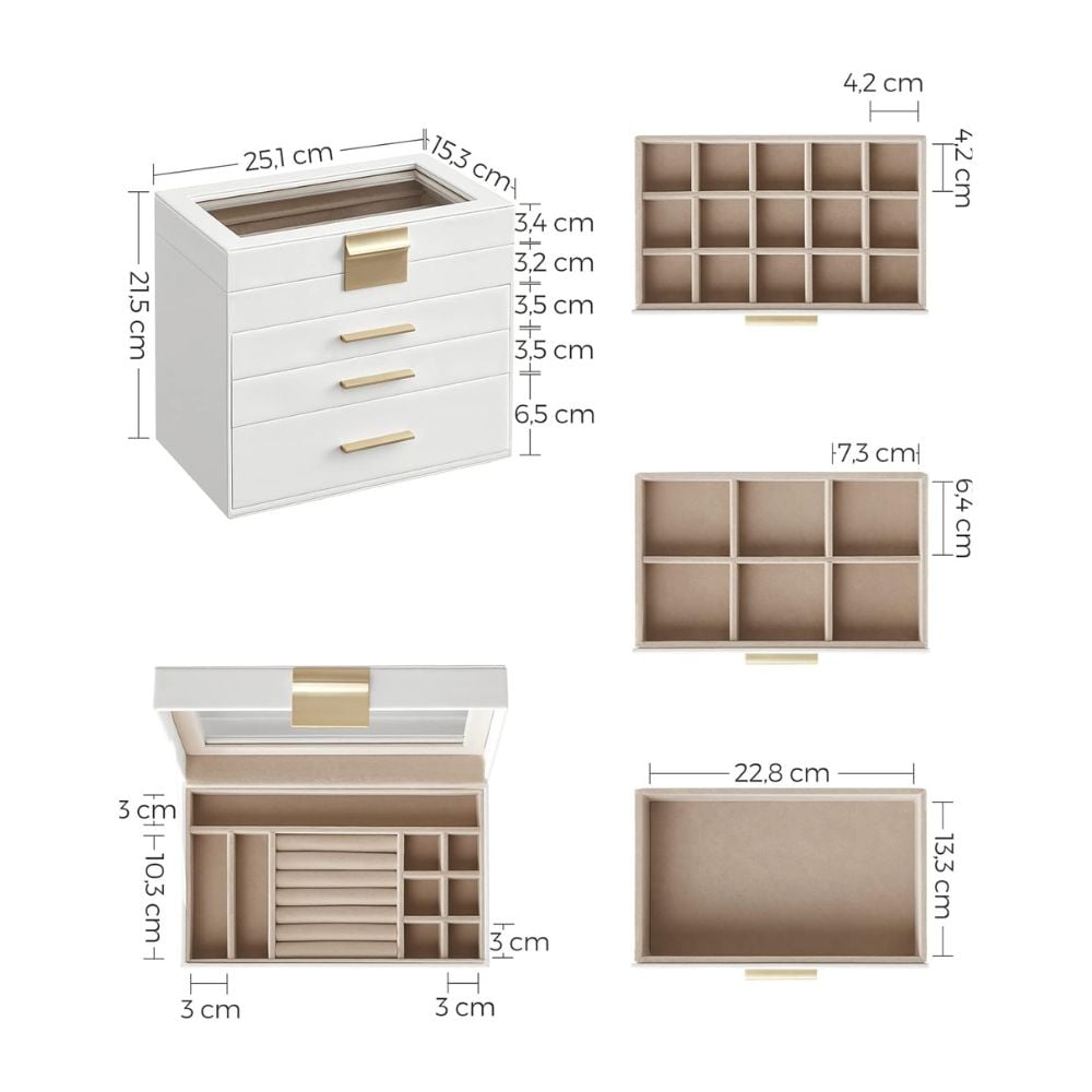 Keep your jewellery beautifully displayed and perfectly organised with the Songmics 4-Tier Jewellery Box. Designed with elegance and practicality in mind, this organiser combines chic style with smart storage for all your treasured accessories.