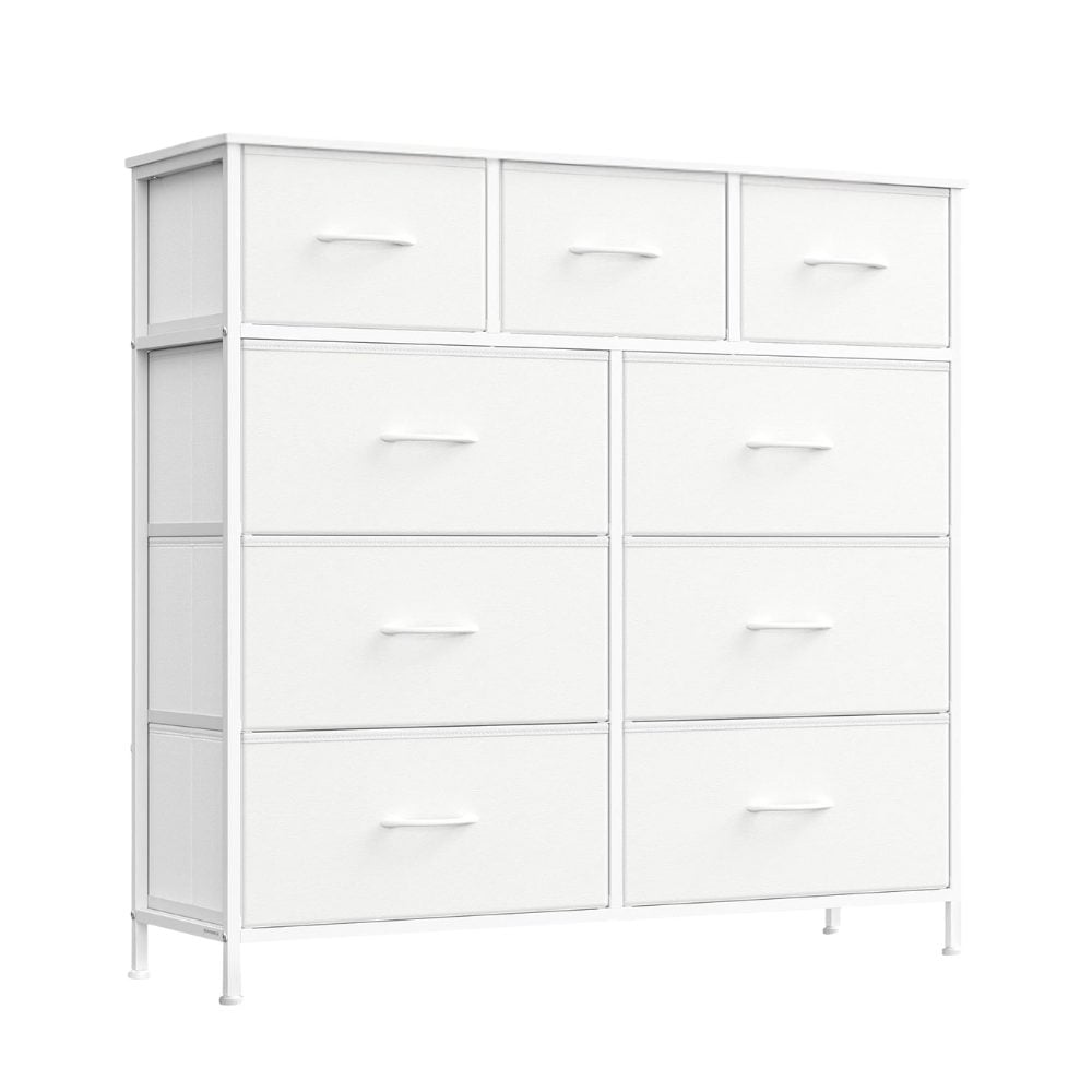 Featuring 6 large drawers and 3 smaller ones, it allows you to easily organise clothing, accessories, or everyday items. The smooth white top surface doubles as a display area for lamps, plants, or cherished keepsakes.