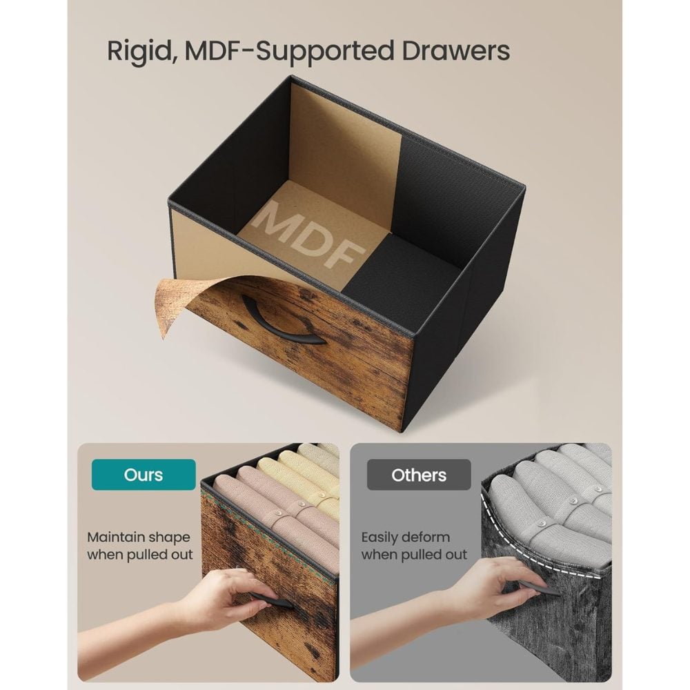Bring warmth and function to your space with this Songmics Chest of Drawers in rustic brown. Blending modern simplicity with a classic wood look, this versatile fabric dresser fits perfectly in bedrooms, hallways, living rooms, and even offices.