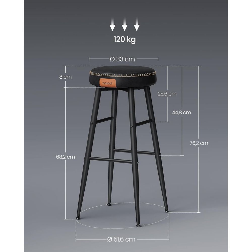 Transform your kitchen or home bar with the Vasagle Kitchen Bar Stool Chair Set of 2 in sleek black. With refined PU upholstery, precision stitching, and slender matte black steel legs, these stools are a blend of modern elegance with durability.